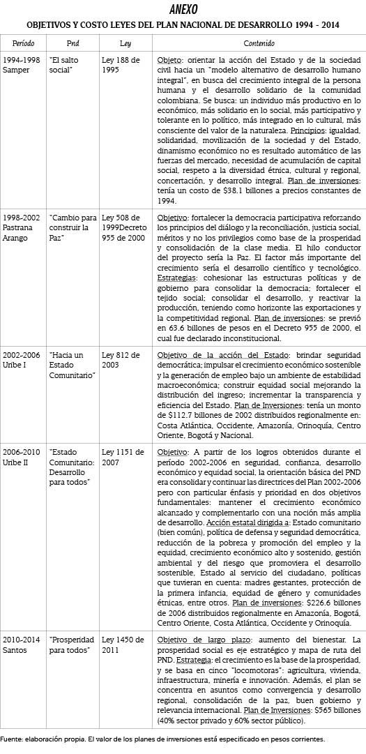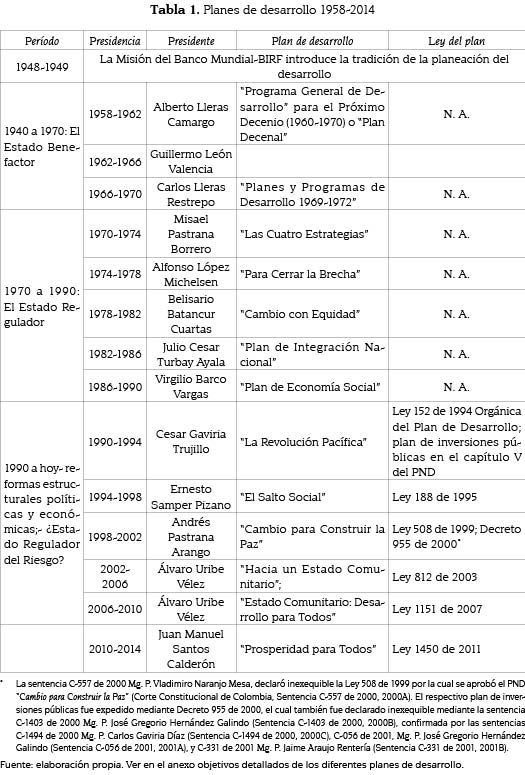 2 Los diferentes planes de desarrollo están disponibles en la página web del Departamento Nacional de Planeación de Colombia –DNP–.